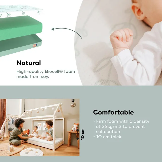 Measuring 70 x 140 cm, this mattress fits all cots with the same dimensions.