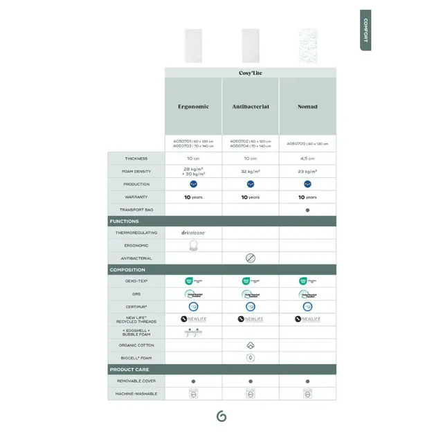 – The Cosy’Lite antibacterial mattress is made in Portugal, thereby minimising our manufacturing carbon footprint.