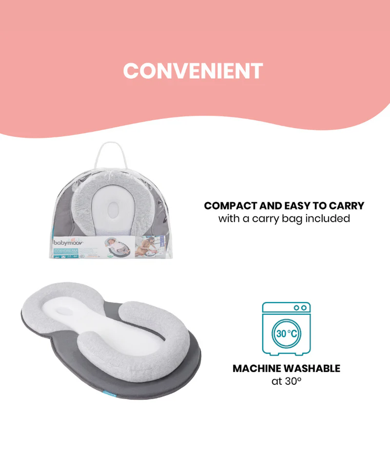 Developed in conjunction with experts (paediatricians, osteopaths and midwives) and our co-creator parents, the Babymoov Cosydream sleep positioner reassures your baby and reduces minor ailments that can occur when your baby is lying on their back.