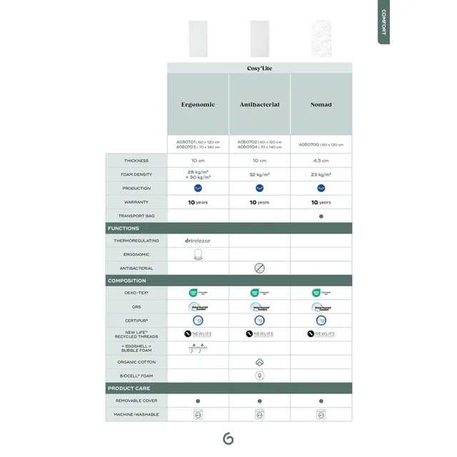 – The Cosy’Lite mattress is made in Portugal, thereby minimising its carbon footprint.