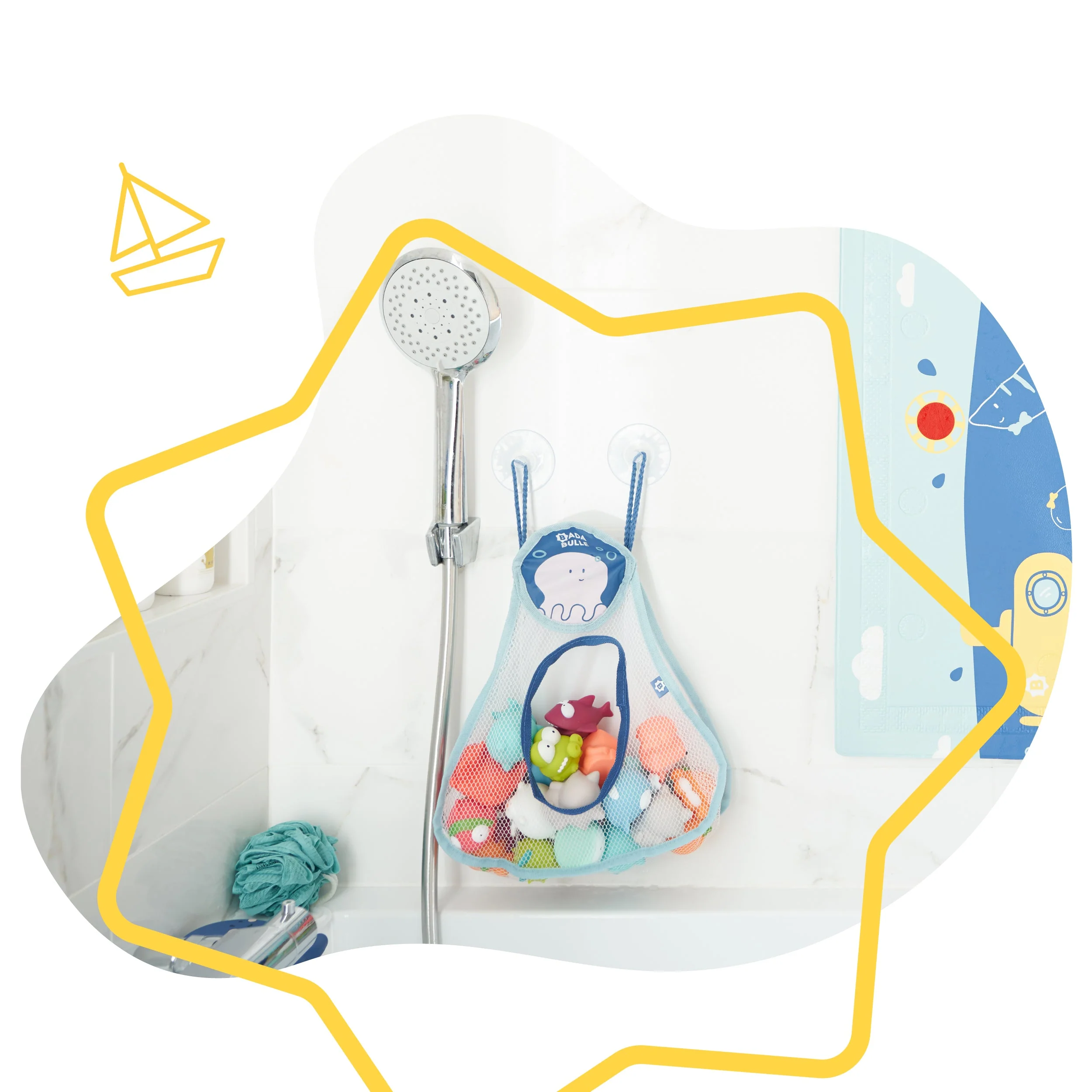 The Badabulle bath net has two large suction cups so it sticks firmly to your bathroom wall – really practical!