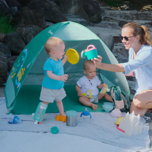 In the garden, on the beach or in the park, for playing or napping, the Badabulle anti-UV tent protects your baby from the sun as well as wind and sand. Highly practical, the tent opens up and folds down in just a few seconds with its pop-up system. Once opened, you can fix it to the ground using the four pegs provided to keep it firmly in place.